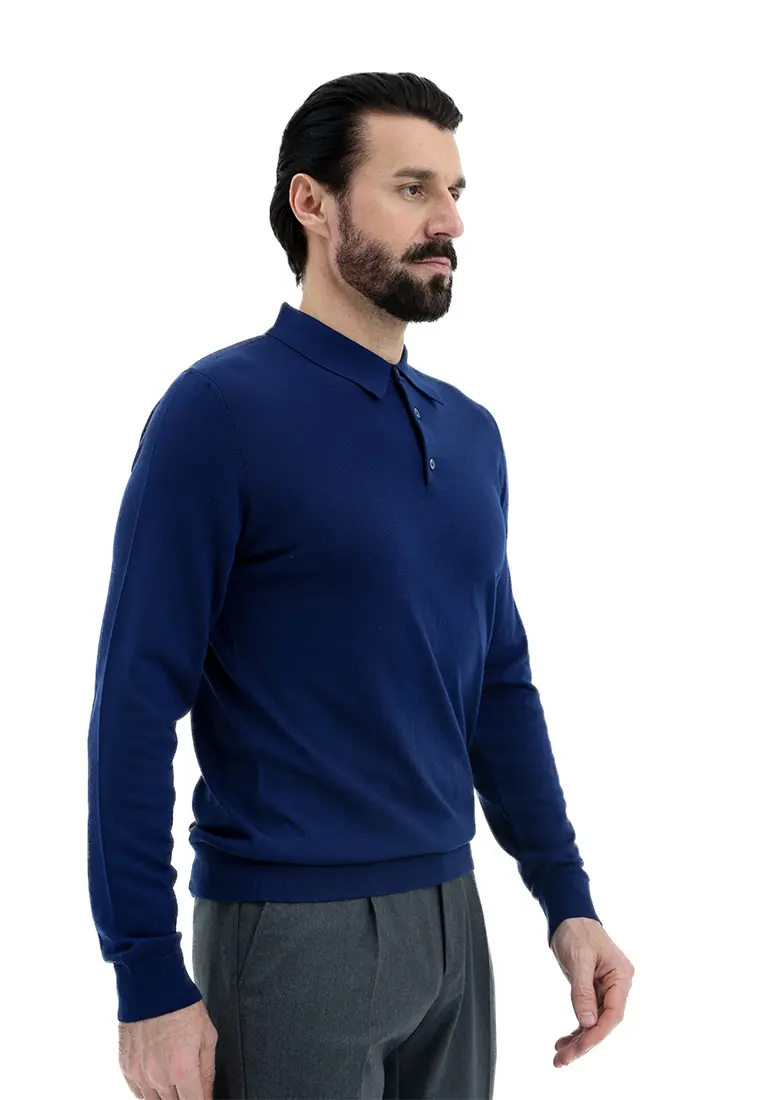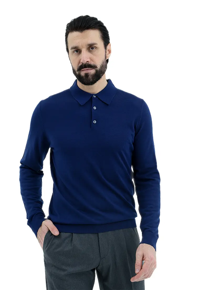 Поло с длинными рукавами заменит рубашку в офисе с нестрогим дресс-кодом или подружится с лаконичными брюками и кроссовками. Модель в синем цвете выполнили из отборной шерсти, которая поддерживает оптимальный микроклимат и на улице, и в помещении.